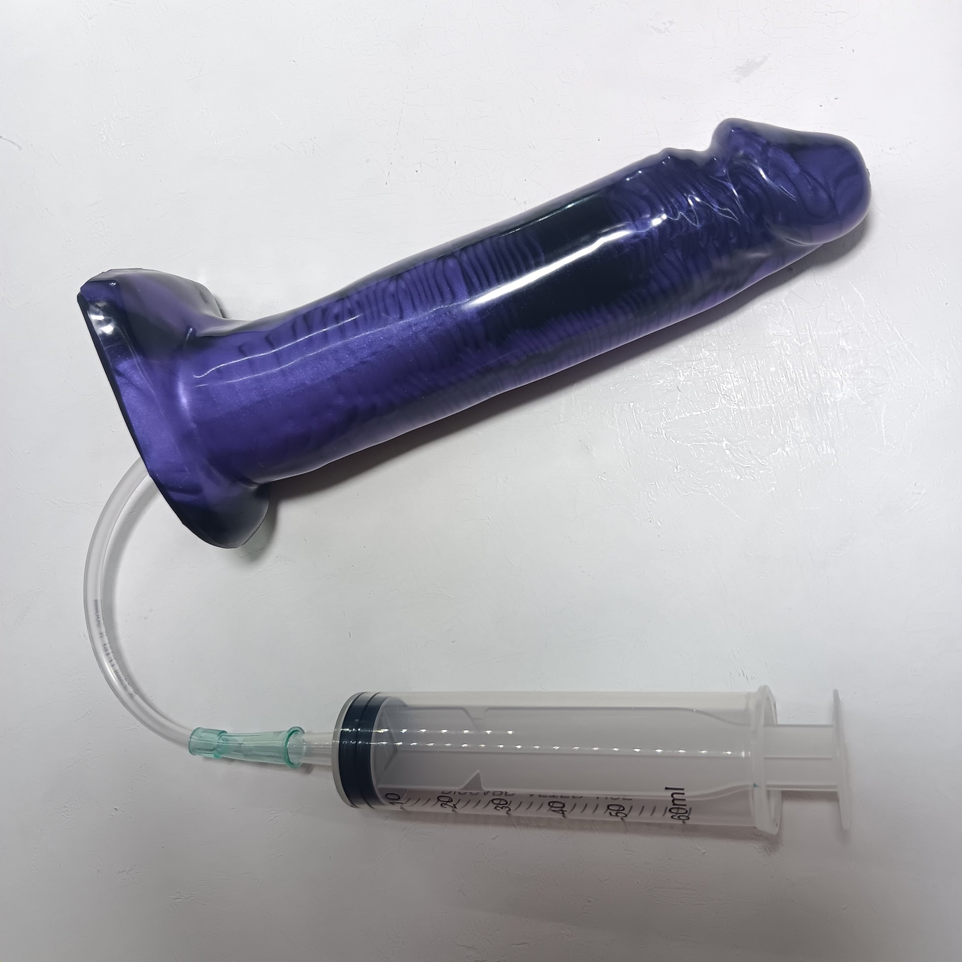 Made with a squeezable but firm Platinum Silicone this Action toy has a small hole from the tip to the base. The wearer can then receive a strong suction from a partner sucking on the tip, and visual ejection when used with the included syringe system.